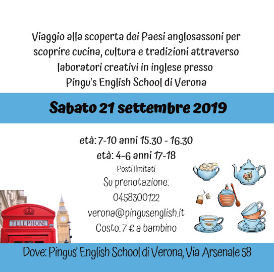 Sabato 21 settembre partecipa insieme a Cuocadè – presso la scuola Pingu’s English di Verona – ad un viaggio alla scoperta della cucina anglosassone.